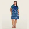 Vestido Plus Size Manga Curta Ref S01900 Estampado Azul RITA - 52