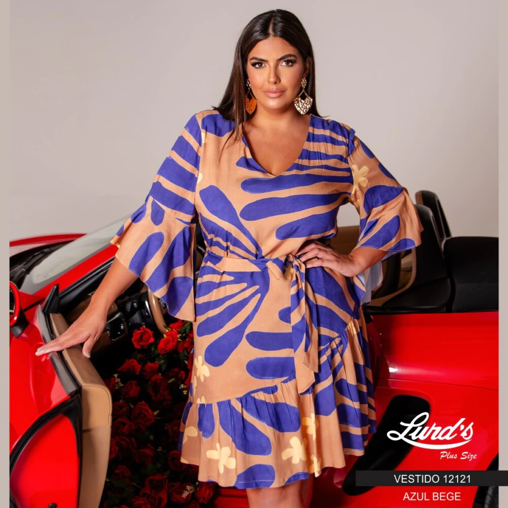 Vestido Plus Size Manga Longa 12121 Azul Bege