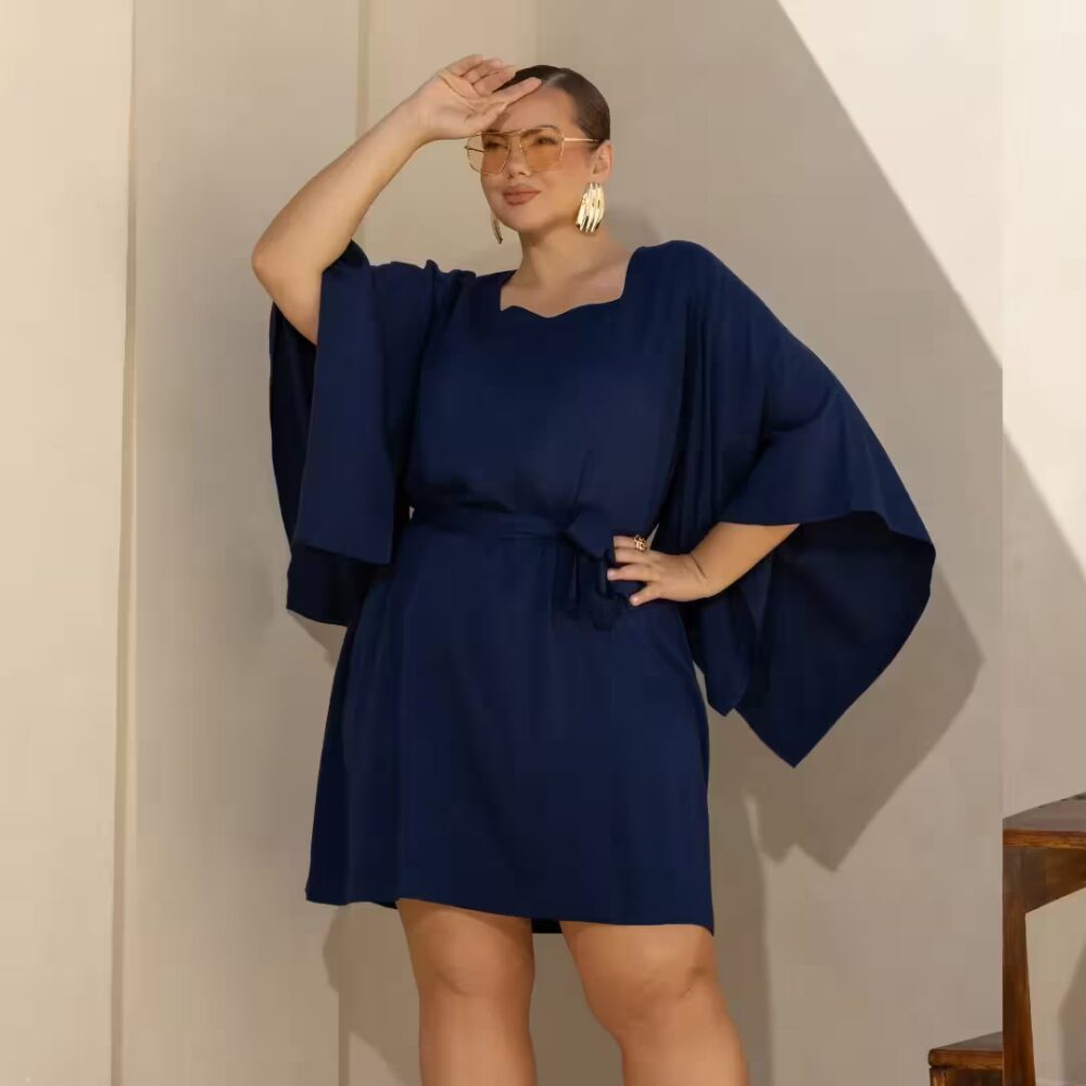 Vestido Plus Size Marinho com Mangas Ref 900892 Marinho