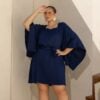 Mangas “Morcego” Amplas: O grande destaque da peça. As mangas fluidas garantem liberdade de movimento e um toque de drama sofisticado ao look.