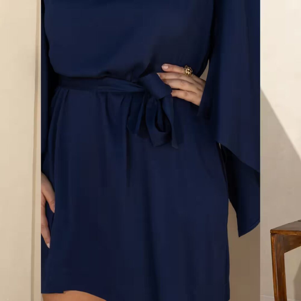 O equilíbrio perfeito entre o frescor da viscose e o impacto visual das mangas fluidas. Este modelo foi desenhado para quem não abre mão do conforto, mas deseja um visual marcante e refinado.