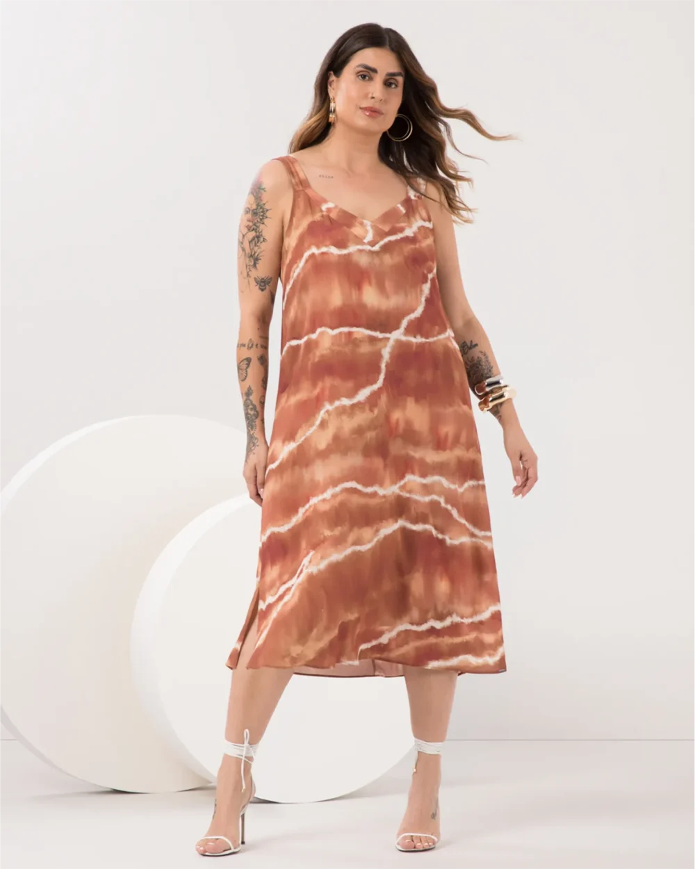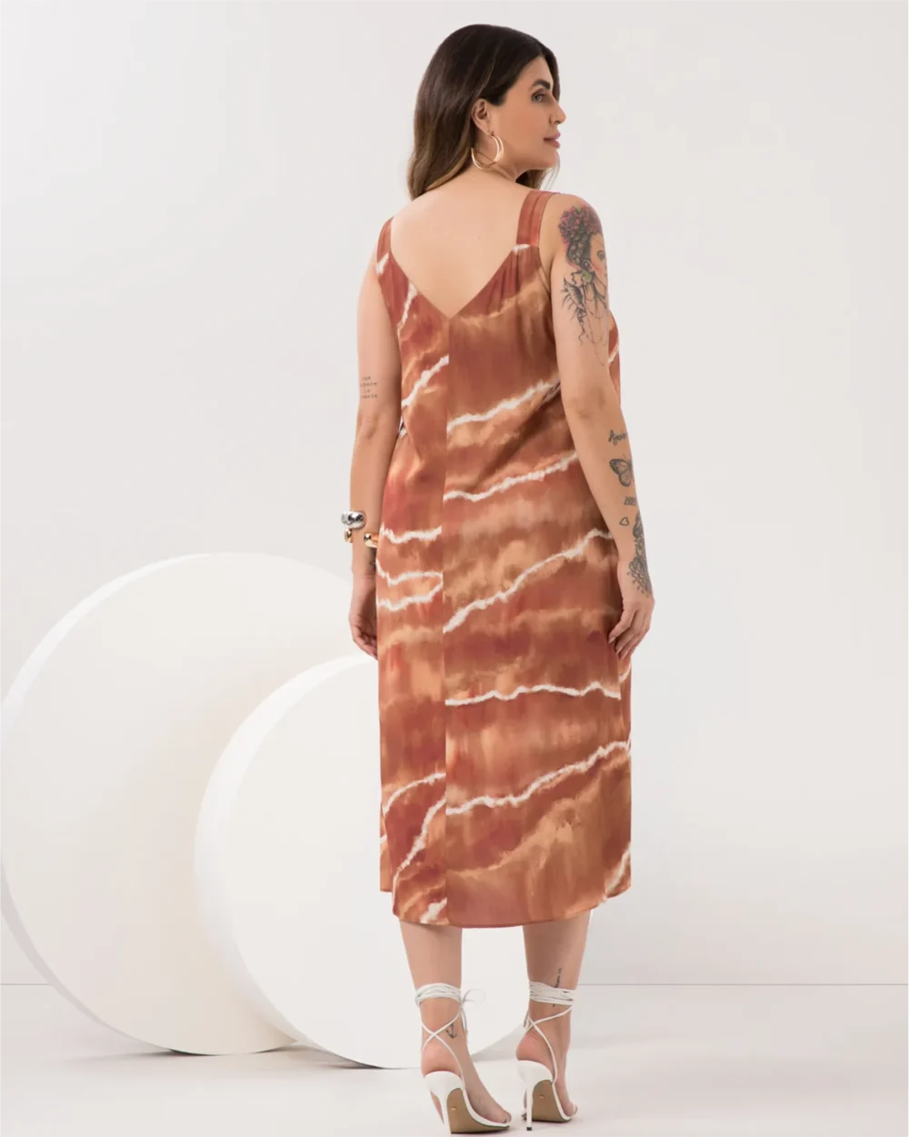 Vestido Mid Plus Size Sem Manga Ref VSM-052 Estampa Bege