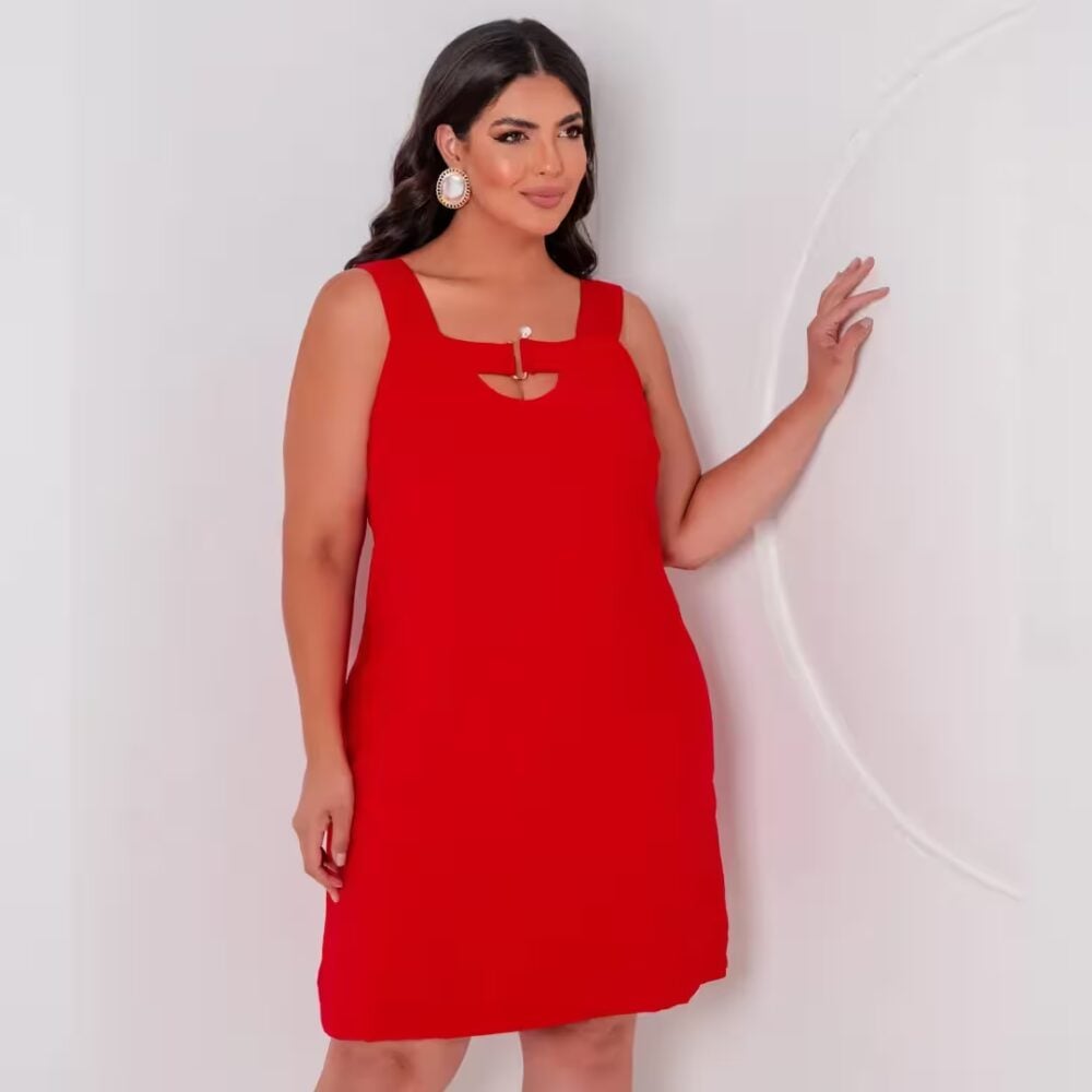 Vestido Sem Manga Plus Size Ref 900881 Vermelho